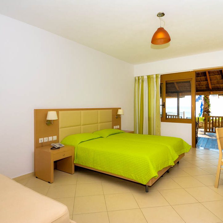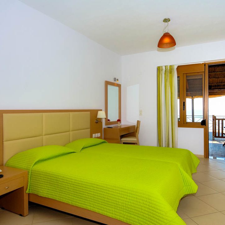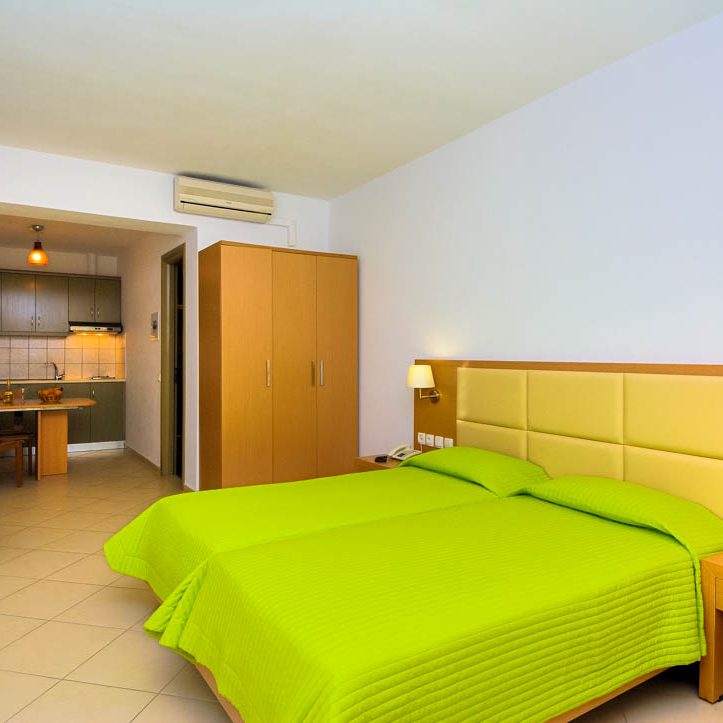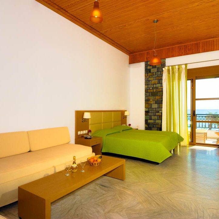 Τα δωμάτιά μας προσφέρουνε έναν μοντέρνο σχεδιασμό, έχουνε θέα στη θάλασσα και είναι ιδιαίτερα άνετα και ευρύχωρα τόσο για ζευγάρια όσο και για οικογένειες. Όλα μας τα δωμάτια είναι πλήρως εξοπλισμένα και διαθέτουν τηλέφωνο, air-codition, στεγνωτήρα μαλλιών, κουζίνα, δύο ηλεκτρικά μάτια, ψυγείο και βραστήρα. Επίσης διατίθεται τηλεόραση LED υψηλής ευκρίνειας και WiFi για την καθημερινή σας χαλάρωση αλλά και θυρίδα ασφαλείας για την φύλαξη των πολύτιμων αντικειμένων σας. Η συνολική επιφάνεια των δωματίων κυμαίνεται από 20 m² έως 40 m².